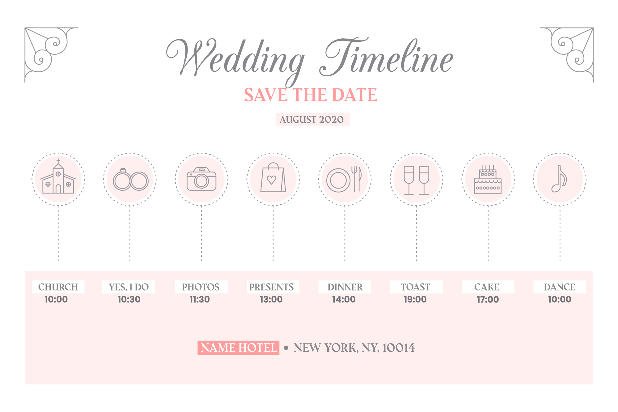 Per un’organizzazione impeccabile, condividi il piano dettagliato con tutti i fornitori coinvolti, come fotografi, musicisti e catering. In questo modo, ognuno sarà preparato e saprà come integrarsi con il resto della giornata.